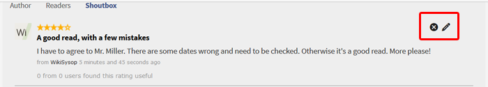 | 12:59, 1. Dez. 2016 | RatedComments editbutton.png (Datei) | 31 KB | Maintenance script | Importing file | 1 | |