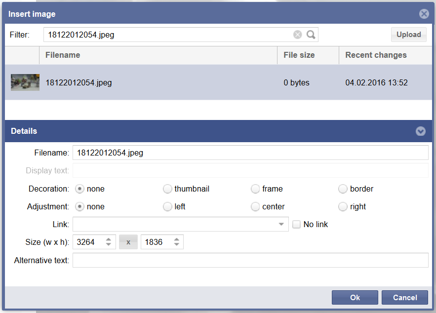 | 12:59, 1. Dez. 2016 | BlueSpice2-InsertImage-Dialog.png (Datei) | 28 KB | Maintenance script | Importing file | 1 | |